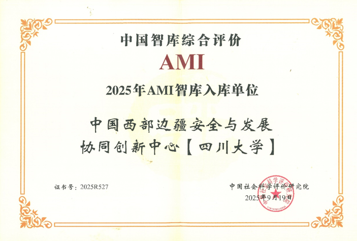 会上公布了中国智库综合评价研究项目(2025)评审结果,四川大学中国西部边疆安全与发展协同创新中心入选“中国智库综合评价研究项目(2025)AMI智库”名单。中国西部边疆安全与发展协同创新中心的“品牌项目”入选“中国特色新型智库建设十年回顾参考案例”。
